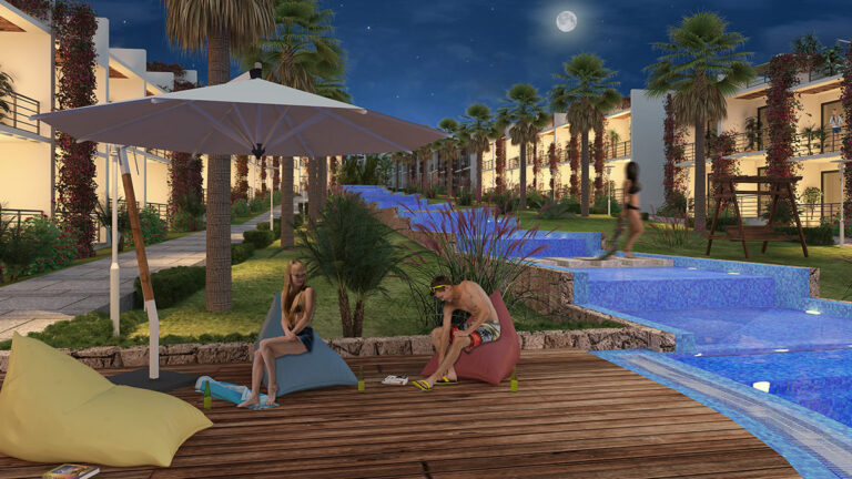 Pearl Island consist of 156 studio apartments: ground floor studio apartments have 35m2 gross area, 8m2 garden terrace and studio apartments on the first floor with 35m2 gross area, 8m2 terrace and 35m2 roof terrace.